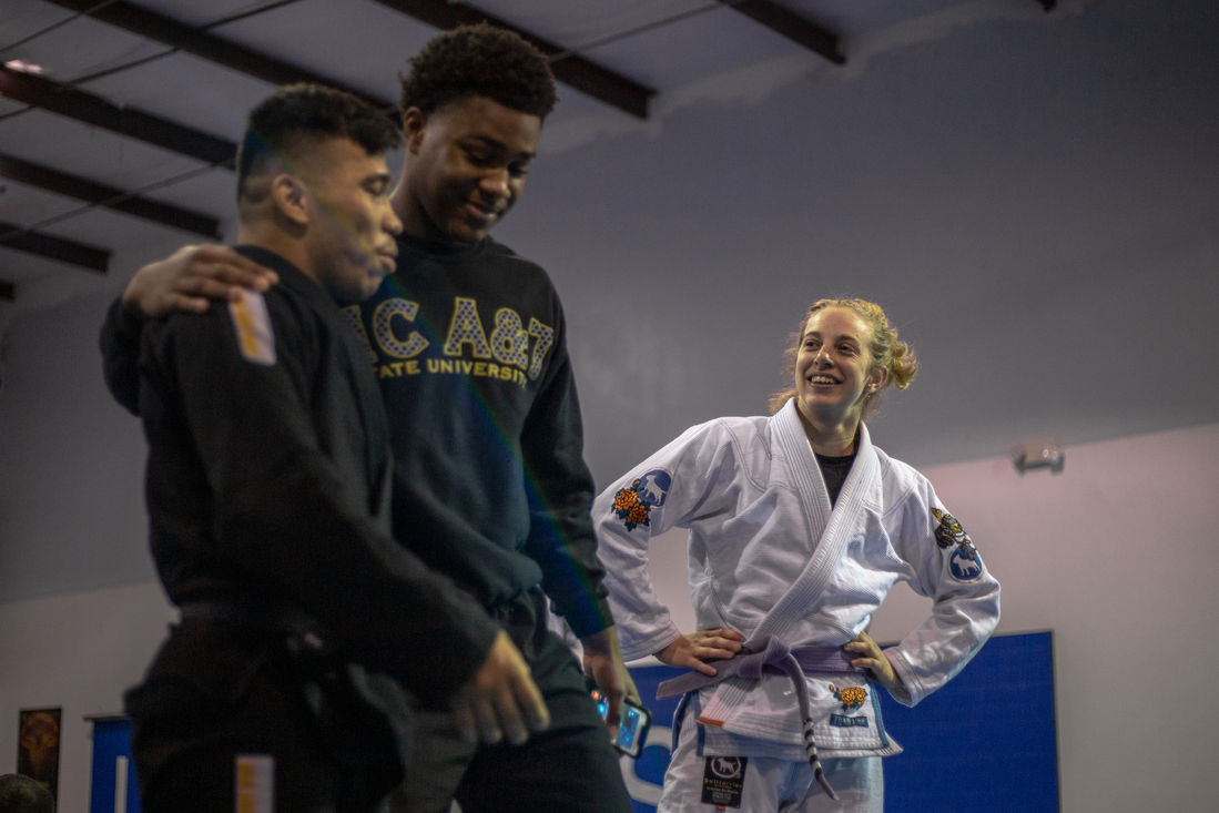 Maggie is 28 years old with a PhD in chemistry and an undying love for jiu jitsu. She feels that there are vast similarities between hard sciences--like chemistry-- and jiu jitsu. The creativity, trial and error, and beauty of both jiu jitsu and chemistry are what keep Maggie coming back. After years of training, on November 19, 2022, Maggie was surprised by her professor and instructors and awarded her brown belt, which is a tremendous accomplishment.
